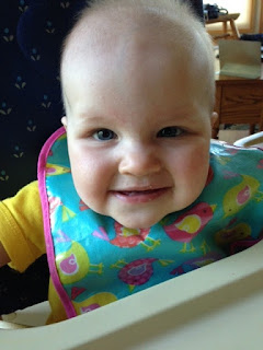 Unfortunately she caught a bit of a stomach bug in the past 24 hours so Mom and Dad will be switching off our time at home and work in the next day or two. She has to remain healthy for 24 hours before she can return to school. Its most likely related to teething, but apparently 3 of the other kids in her classroom are experiencing a similar thing right now :)